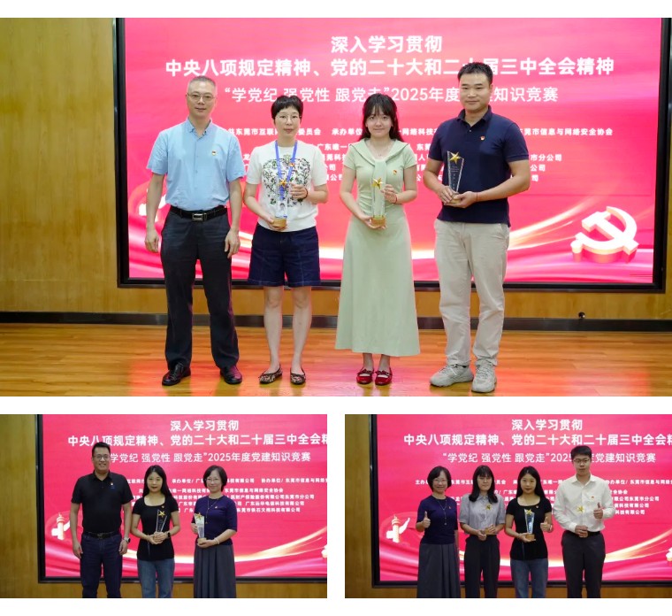 为深入贯彻党的二十届三中全会精神,持续巩固拓展主题教育成果,在中国共产党成立104周年之际,由市互联网行业党委主办,广东唯一网络科技有限公司承办,东莞市信息与网络安全协会协办的“学党纪 强党性 跟党走”2025年度东莞市互联网行业党建知识竞赛活动成功举办。 7月23日上午,广东唯一网络科技有限公司党支部、东莞市信息与网络安全协会党支部、楚天龙股份有限公司党支部、广东通莞科技股份有限公司党支部、中国人民财产保险股份有限公司东莞市分公司党支部、广东广量勘测规划有限公司党支部、广东远华电信科技有限公司党支部、东莞力联信息技术有限公司党支部、东莞市铁石文档科技有限公司党支部、广东网安科技有限公司党支部、广东帝恩思信息科技有限公司等党员代表齐聚唯一网络党建示范基地,联合开展了一场别开生面的党建活动。 竞赛开场前,唯一网络战略客户部副总经理、东莞市信息与网络安全协会党支部书记王毓敏代表唯一网络发表讲话。他对各党支部党员代表的到来表示热烈欢迎,强调作为本次活动的承办方,唯一网络始终将党建工作摆在重要位置,坚持以党建引领企业发展,此次联合市信息与网络安全协会协办活动,既是对党建工作成果的一次集中展示,更是加强行业交流、凝聚党建合力的重要契机,希望通过知识竞赛搭建互学互鉴的平台,激发党员干部的学习热情与奋斗精神。 随后,东莞市互联网行业党委代表在活动发表致辞。他指出,本次党建知识竞赛是创新党史学习教育形式、检验学习成效的一次积极尝试,旨在以创新的方式激发各基层党支部的学习热情,推动党员干部深入学习党建知识,充分发挥党建在企业发展中的引领和驱动作用,助力企业实现高质量发展。他鼓励各参赛代表在竞赛中充分展现自身实力,赛出风格、赛出水平,争取优异成绩。 赛场上,五支参赛代表队迅速进入竞技状态,率先在个人作答与团队作答环节展开交锋。各队选手胸有成竹,面对涵盖党史、党章及党的创新理论的考题时,皆能从容应答,答案完整精准,尽显扎实的理论功底与过硬的政治素养。压轴的抢答环节更将赛事推向高潮——随着主持人一声“开始”,抢答器的提示音此起彼伏,选手们眼疾手快拼反应,沉着应答展实力,比分在胶着中交替攀升,你来我往间毫不退让。这股奋勇争先的劲头,既彰显了参赛队伍丰厚的知识储备,更展现出新时代党员锐意进取的精神风貌,现场掌声与喝彩声交织,紧张激烈的氛围中洋溢着竞技的精彩与党建学习的热忱。 经过三轮紧张激烈的角逐,中国人民财产保险股份有限公司东莞市分公司党支部参赛代表凭借反应敏捷、精准无误的答题表现,在比拼中脱颖而出,摘得本次党建知识竞赛的桂冠;广东唯一网络科技有限公司党支部紧随其后,斩获团队二等奖;广东通莞科技股份有限公司党支部荣获三等奖;东莞市信息与网络安全协会党支部和楚天龙股份有限公司党支部则凭借出色的组织协调能力与积极的参与态度,获得优秀组织奖。 竞赛结束后,市互联网行业党委代表对活动的成功举办表示祝贺,对现场工作人员的辛勤付出表示衷心感谢,对参赛代表们的精彩表现给予了高度评价。他强调,通过本次党建知识竞赛,达到了以学助赛、以赛促学、学以致用的预期目标,有助于党员干部深入学习贯彻全会精神,深刻领会全会的重大意义,时刻牢记初心使命,坚定不移推动事业发展,努力成为新时代合格的“答卷人”。 随后,各党支部代表一同乘车前往常平桥梓中共东莞县委机关旧址和李任之故居开展党性教育活动。在中共东莞县委机关旧址,大家通过参观珍贵的历史文物、详实的文献资料和生动的图片展示,深入了解了东莞党组织早期在艰苦环境中领导革命斗争、组织农民运动的英勇历程,深刻感受到老一辈共产党人坚定的理想信念和无私奉献的精神。在李任之故居,党员们通过陈列的生活用品、革命文献和事迹介绍,全面回顾了李任之同志投身革命、为民族独立和人民解放事业奋斗终身的光辉事迹,对其在武装斗争、地方建设等方面作出的卓越贡献有了更深刻的认识。两处红色基地的参观学习,让每一位党员深受触动,不仅是对历史的回顾,更是一次深刻的精神洗礼和情感升华。在旧址广场前,全体党员庄严地重温了入党誓词,坚定了为实现中华民族伟大复兴的中国梦而不懈奋斗的决心。 本次党建共建活动,不仅为各参与单位搭建了交流合作的平台,加深了彼此之间的了解与信任,更在广大党员心中厚植了红色基因,激发了他们为实现中华民族伟大复兴而努力奋斗的热情与决心。活动将党建工作与互联网行业发展紧密结合,为推动东莞互联网行业的健康、快速发展凝聚了强大的红色力量,提供了有力的组织保障和精神支撑。未来,协会将以此次活动为契机,持续加强党建引领,不断探索创新党建工作模式,为东莞互联网行业的高质量发展作出更大贡献。